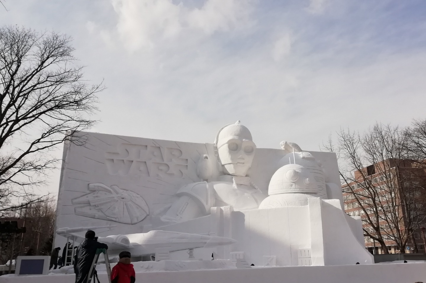雪まつりは、1950年に、地元の中・高校生が6つの雪像を大通公園に設置したことを きっかけに始まったとのことで、雪合戦、雪像展、カーニバル等を合わせて開催、5万人あまりの人出で予想以上の大人気だったそうです。以後、札幌の冬の行事として市民に定着していき、今では世界的なイベントになりました。様々な災害があったにも関わらず「70回札幌雪祭り」を無事迎えられた事は奇跡のように感じられます。